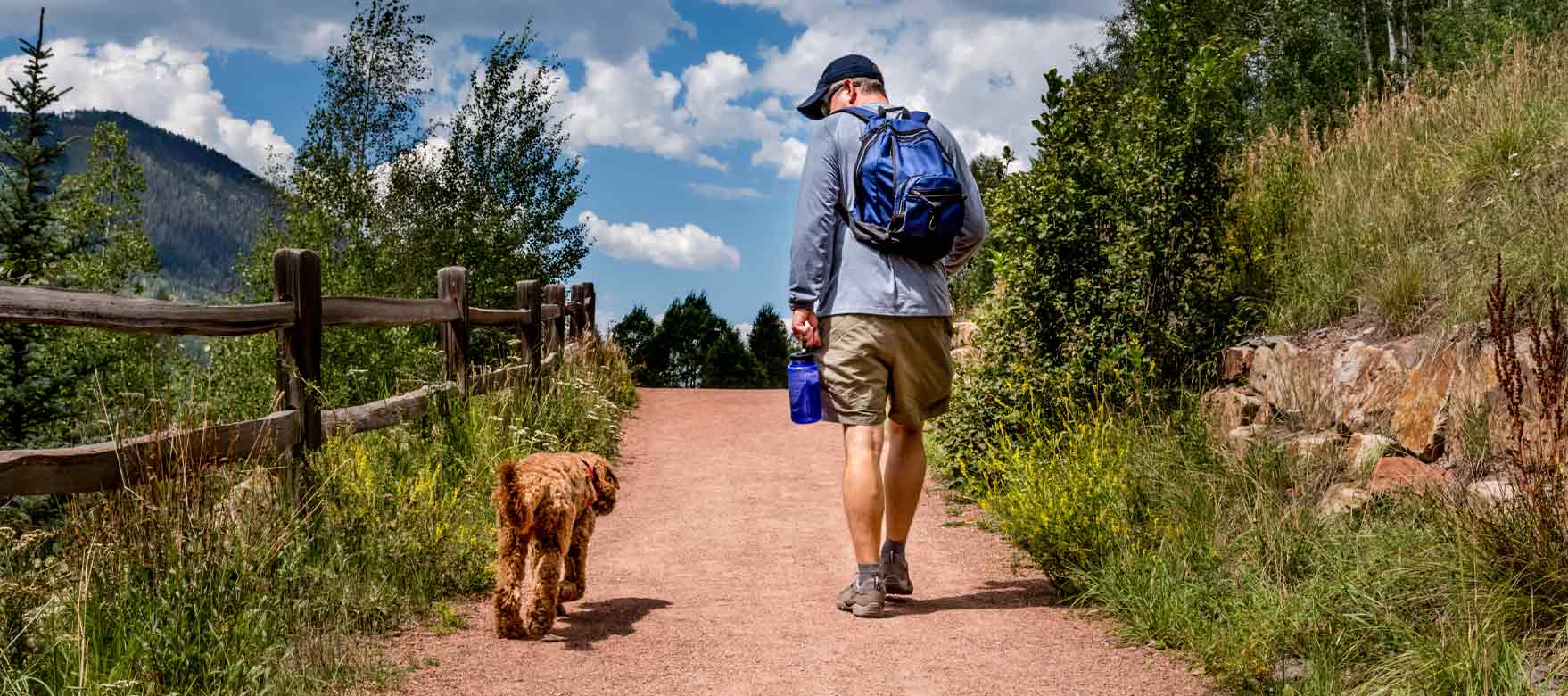 If 30 minutes goes well, then increase time and distance 15 minutes or a quarter of a mile each outing. Just remember to keep things shorter if you’re crossing steeper terrain.